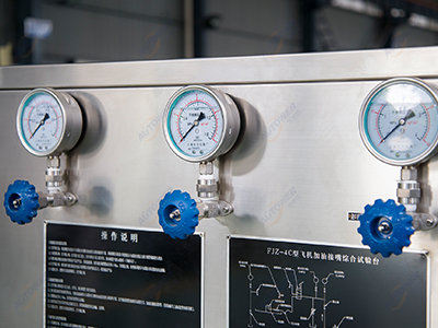 FJZ-4A型飛機加油接頭綜合試驗臺是為滿足偏遠地區(qū)或者不便于提供電源的現(xiàn)場測試各型飛機壓力加油接頭性能及飛機加油膠管耐壓試驗要求而專門進行設(shè)計的一款試驗設(shè)備。它能準確輸出和檢測試驗過程中的各種壓力,測試精度滿足技術(shù)要求。該設(shè)備具有性能可靠,操作簡便,移動性強,不帶電提供壓力,可擴展測試其它管路及閥門等特點。試驗臺整體采用不銹鋼材質(zhì),試驗臺管路均為不銹鋼管路,滿足各種惡劣環(huán)境下的工作要求,是一臺具有一定通用性的航煤綜合測試設(shè)備。